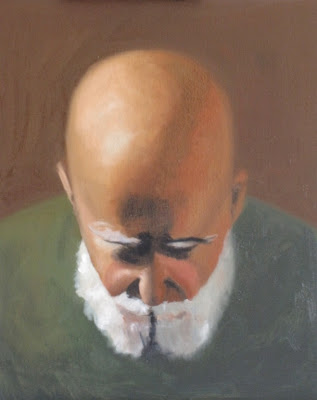 Inspiration: For Figure Painting. Foreshortened head. I have now sculpted, drawn, and painted this guy. My school likes to use him as a model a lot. This was difficult because began it on Friday and finished it today. It had time to dry and become tacky in between so while working on it today it was really really hard to blend. I think it ended up nicely though.